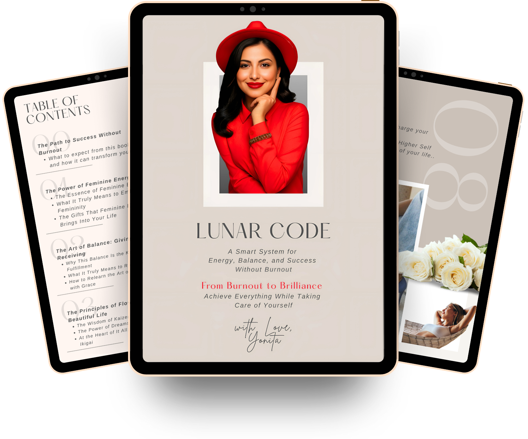 The Lunar Code is a transformational guide for high-achieving, heart-led women who are ready to live, create, and lead from a place of feminine power - not pressure.