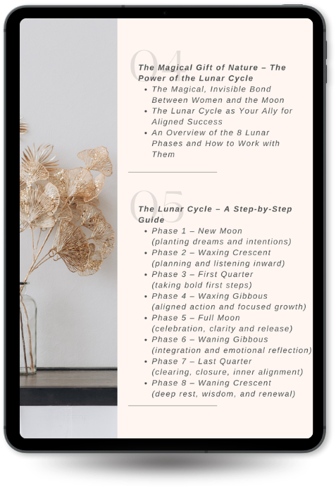 It teaches you how to build a smart, soul-aligned system that blends personal growth with lunar wisdom, so you can stop pushing through life... and start flowing with it.